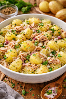 Cette salade méditerranéenne de pommes de terre et de thon est une option fraîche, nutritive et très facile à préparer. Elle combine des ingrédients classiques du régime méditerranéen comme le thon, les pommes de terre et l'huile d'olive, pour un plat équilibré et savoureux, parfait en toute saison.