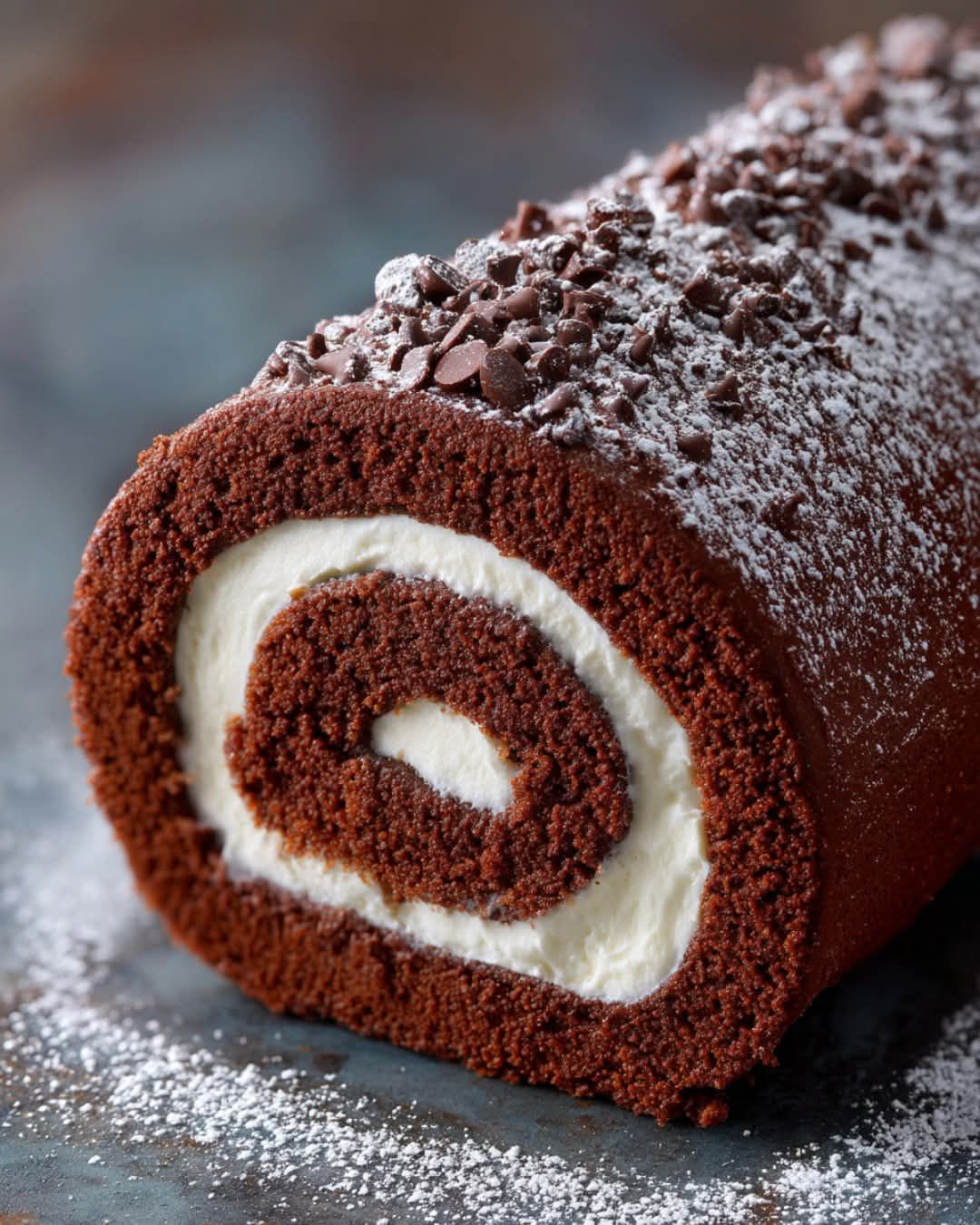 Roulé au chocolat 🎂Un dessert raffiné et élégant composé d'un riche gâteau au chocolat roulé et garni d'une onctueuse