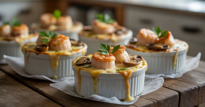 Offrez-vous un moment d’évasion gastronomique avec cette cassolette de la mer, une recette raffinée et fondante qui sublime les produits de l’océan. Les noix de Saint-Jacques dorées, les crevettes tendres et les champignons crémeux se marient dans une sauce onctueuse au vin blanc et à la crème. Facile à réaliser mais digne d’une table de fête, ce plat réconfortant et élégant ravira tous les amateurs de saveurs marines.