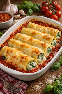 Ingrédients pour la préparation des cannellonis aux épinards et à la ricotta