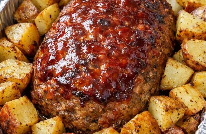 Pain de viande et pommes de terre au four (recette simple) Ce pain de viande et pommes de terre au four est la solution idéale pour les soirs de semaine chargés. La cuisson des pommes de terre en même temps que la viande permet aux jus du pain de viande d'assaisonner les légumes, tandis que la chaleur intense du four crée des bords parfaitement croustillants. Le secret réside dans la panade (trempage dans du lait et de la chapelure), qui maintient le bœuf moelleux et tendre même à haute température. Ingrédients pour le pain de viande : 700 g de bœuf haché (80-85 % maigre), 250 ml de chapelure nature, 125 ml de lait, 1 gros œuf, 125 ml d'oignon finement haché, 2 gousses d'ail hachées, 2 cuillères à soupe de ketchup (pour la panure), 1 cuillère à soupe de sauce Worcestershire…