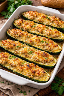 Ingrédients pour la préparation de courgettes farcies au thon