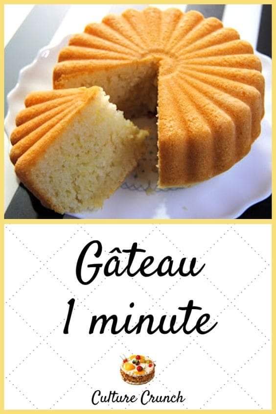 Le gâteau 1 minute est un gâteau à base de farine, lait, œufs, eau, huile, sucre et levure qui nécessite une minute de préparation, aucun mélangeur ou outil spécial, seulement un bol et les ingrédients nécessaires.