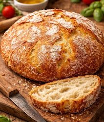 On place la pâte dans un moule légèrement fariné et on l'enfourne dans un four préalablement préchauffé à 180 °C. On la laisse cuire, avec la chaleur venant du haut et du bas, pendant environ 40 minutes.
