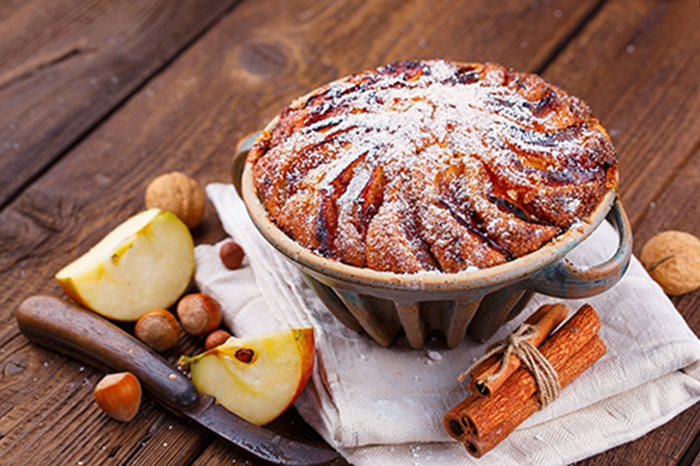 Ingrédients pour la préparation d'un gâteau aux pommes et à la cannelle