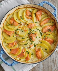 Gratin Crémeux Pommes de Terre & Saumon – Un Nuage de Douceur au Goût Fumé