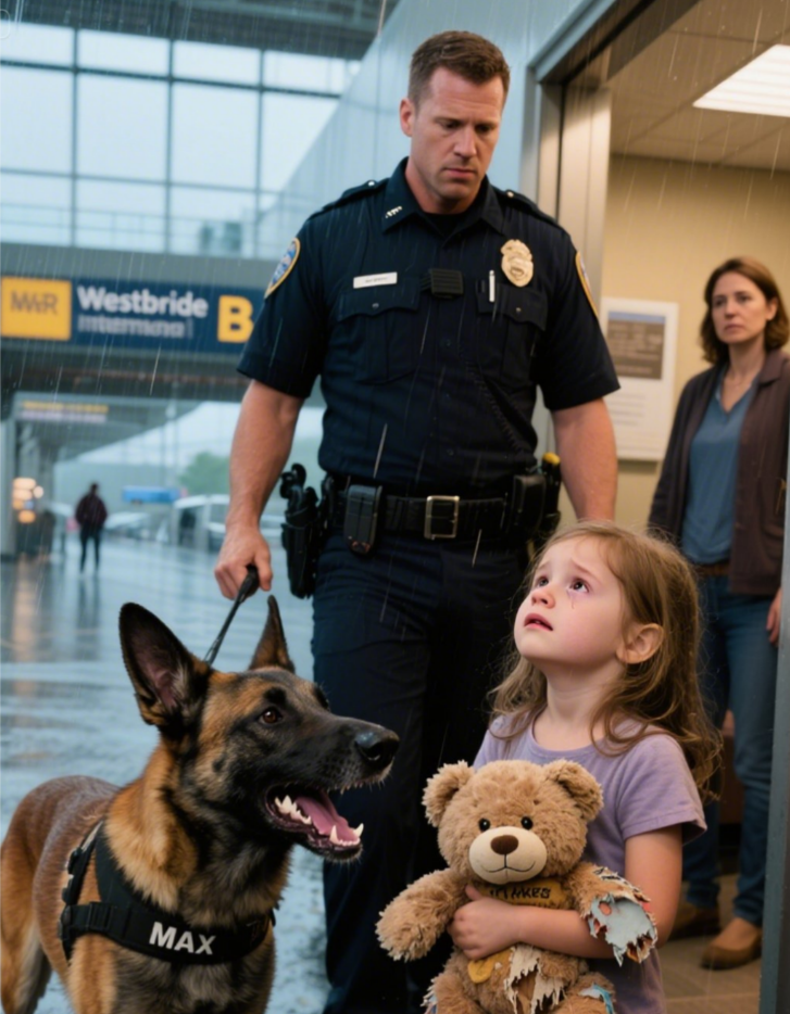 La famille fut escortée jusqu’à une salle de contrôle privée. Les sacs furent à nouveau scannés. Les poches vidées. Tout était prêt. Mais Max ne bougea pas. Il resta planté devant la fillette et son ours, les oreilles en avant, le corps en alerte.