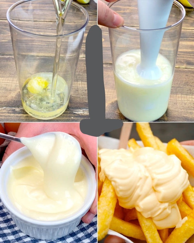 À l’aide d’un mélangeur à main, vous obtenez une tasse pleine de mayonnaise crémeuse en seulement 2 minutes !