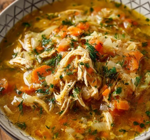 Cette soupe au poulet et au chou est un repas léger et nourrissant idéal : saine et raffinée grâce au parfum du thym et de l’aneth frais. Le chou se prête à merveille aux soupes car il absorbe le riche bouillon de poulet tout en conservant un croquant agréable. Comme pour beaucoup de soupes, les saveurs s’intensifient et elle est encore meilleure le lendemain.