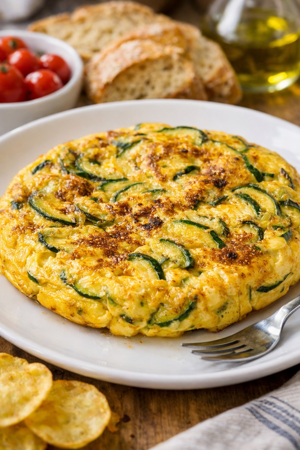 Catégorie : Cuisine internationaleIngrédients pour préparer une omelette aux pommes de terre, oignons et courgettes