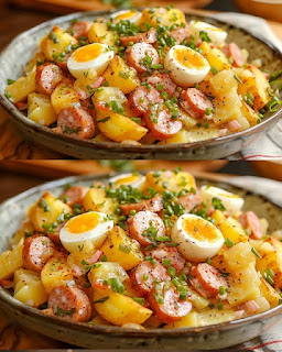 Envie d'une salade savoureuse et conviviale à partager ? La salade de pommes de terre allemande est un classique rafraîchissant, originaire d'Allemagne. Idéale pour l'été, les pique-niques ou en accompagnement de tous vos repas. Son mélange de pommes de terre, de saucisses et d'une onctueuse sauce mayonnaise-moutarde la rend irrésistible. Préparez-la et surprenez vos convives !