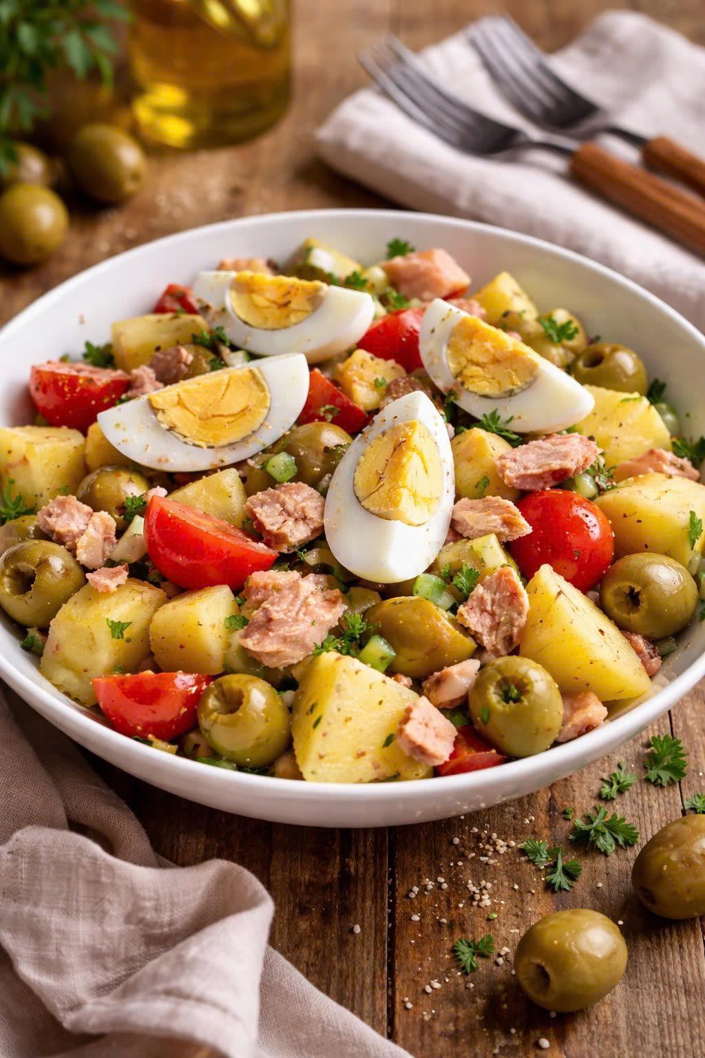 Rafraîchissante, colorée et savoureuse, cette salade méditerranéenne de pommes de terre et de thon est idéale par temps chaud, en entrée ou en plat principal. Composée d'ingrédients simples et sains, son association de saveurs en fait une recette irrésistible.