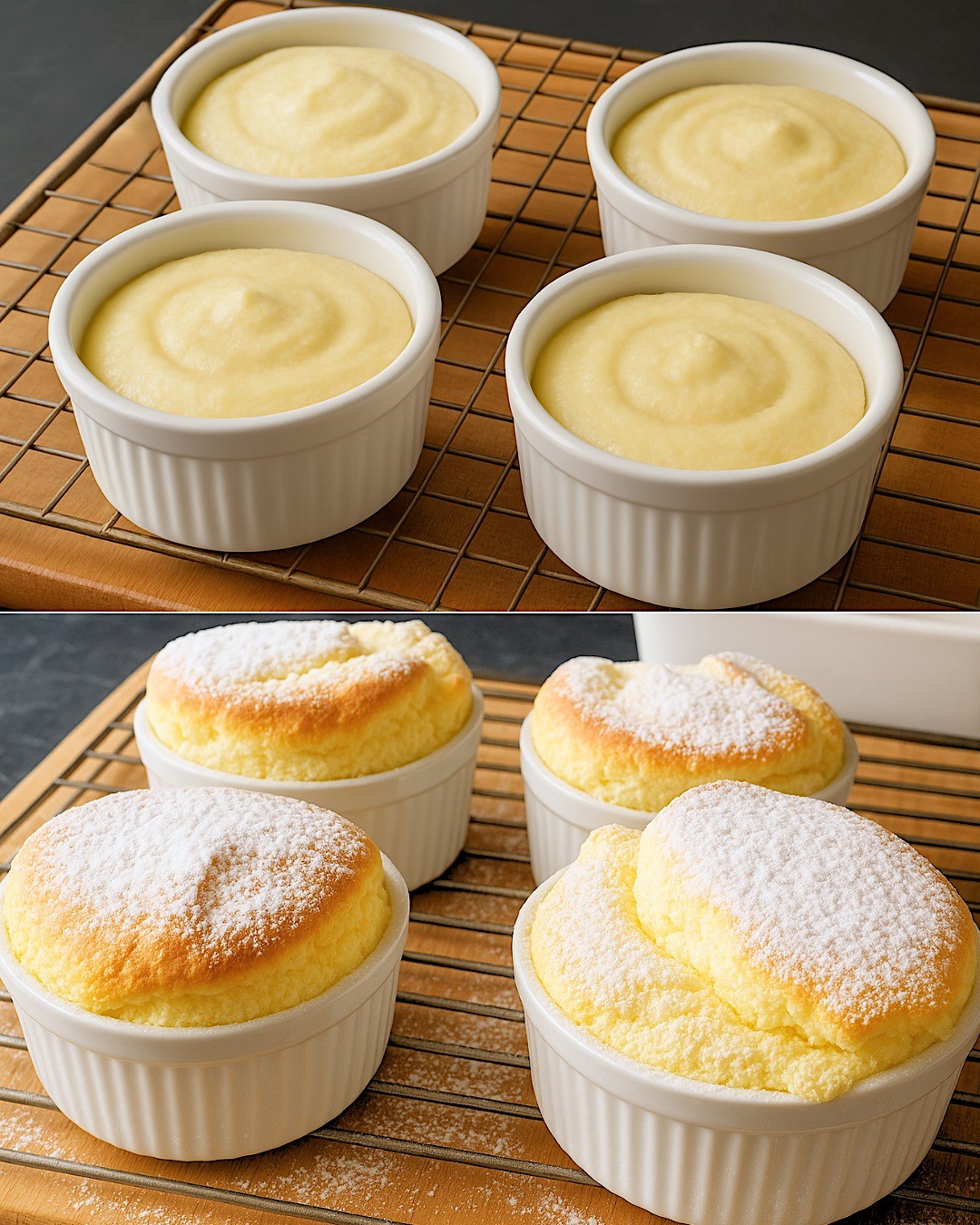 Sachez que le soufflé va naturellement retomber en refroidissant ; c’est tout à fait normal. Pour le déguster à nouveau, réchauffez-le doucement au micro-ondes pendant 15 à 20 secondes . Même s’il ne gonflera pas autant qu’à la sortie du four, il conservera son délicieux goût de citron et son cœur onctueux, semblable à une crème anglaise.