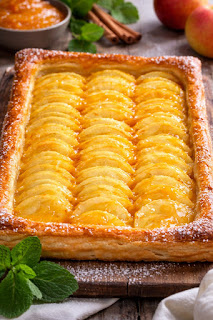 Ingrédients pour la préparation d'une tarte aux pommes à la pâte feuilletée