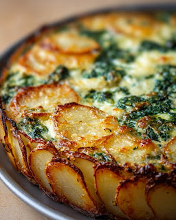 Une tarte unique et réconfortante : une croûte dorée à la pomme de terre, une garniture onctueuse aux épinards, à la crème et au fromage. Une option saine, sans farine lourde, idéale à tout moment de la journée.