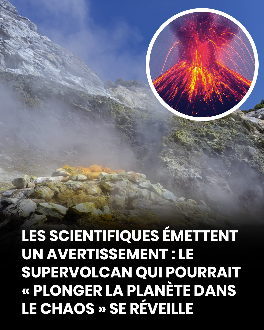 Située à proximité de Naples, cette vaste caldeira volcanique s’étend sur plusieurs kilomètres. Il ne s’agit pas d’un volcan classique, mais d’un supervolcan , c’est-à-dire une formation capable de provoquer des éruptions cataclysmiques à l’échelle mondiale. Il y a 40 000 ans, une éruption d’une puissance extrême aurait contribué à l’extinction des Néandertaliens. Depuis, la zone est sous surveillance constante .