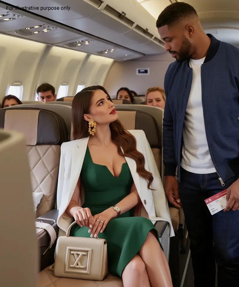 Marcus se tenait, légèrement voûté, sous le plafond exigu de la cabine. Son simple sweat à capuche et son jean usé criaient « coach » à quiconque le regardait trop vite. Pendant ce temps, son bracelet en diamants scintillait sous la douce lumière tamisée de la première classe tandis qu’elle se déplaçait confortablement dans le siège en cuir qui conservait sa chaleur.