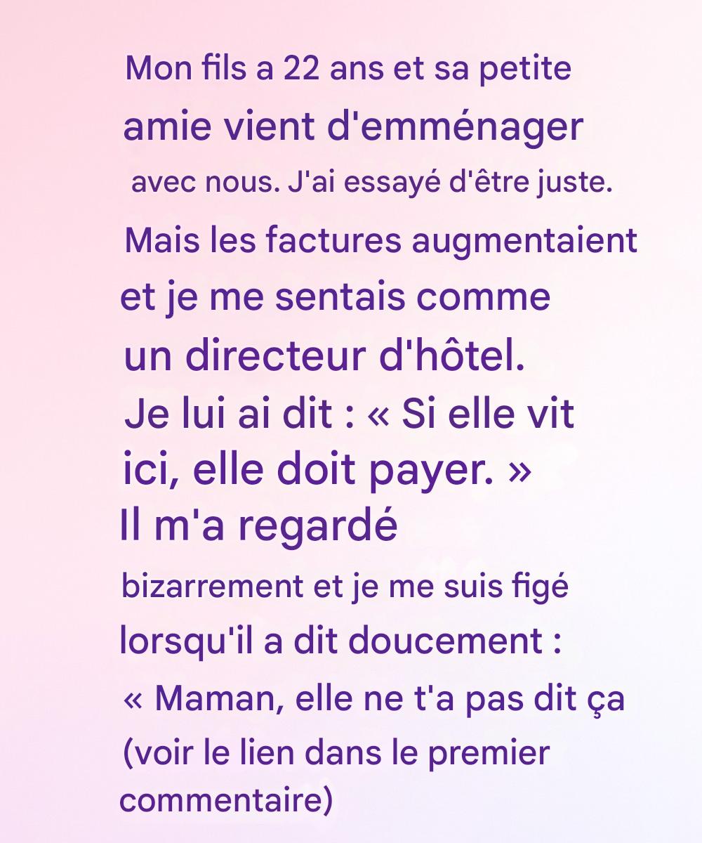 Mon fils a 22 ans et sa petite amie vient d’emménager avec nous.
