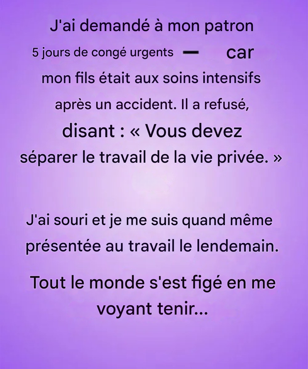 Après avoir passé la nuit blanche sur une chaise inconfortable dans une salle d'attente, j'ai appelé mon responsable pour demander cinq jours de congé afin de pouvoir rester avec mon enfant.